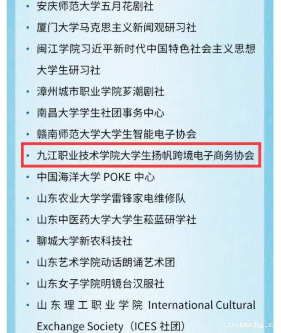 九江职院新闻网讯(校团委 李晶)近日,由团中央基层建设部、中国青年报社主办的高校“活力社团”风采展示活动落下帷幕,我校大学生扬帆跨境电子商务协会在全国参评的4671个社团中脱颖而出,成功入选2023-2024学年全国高校100个“活力社团”,成为江西省唯一入选的高职院校,也是我校在学生社团建设方面取得的突破性成果。