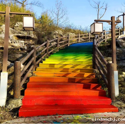 建筑工程学院的志愿者们则是结合专业所学,在濂溪校区后山处设计出了色彩鲜明、富有动感的“彩虹逐梦阶梯”,将美学设计与校园环境完美融合,借用渐变的彩虹色调寓意莘莘学子们逐梦的历程,为校园增添了一抹活力与人文气息。
