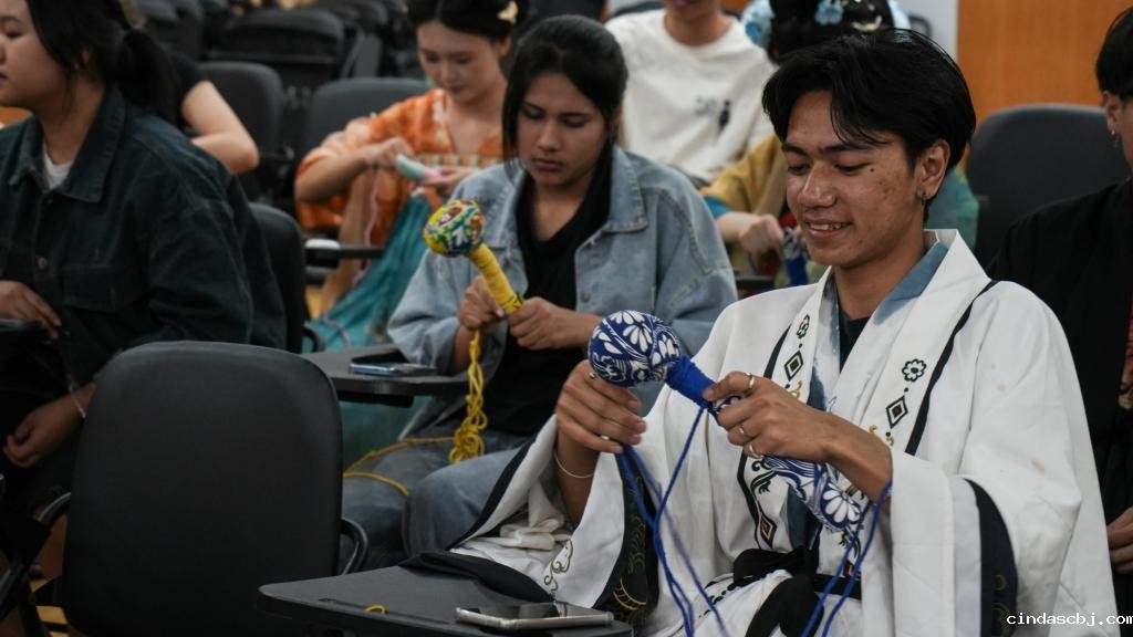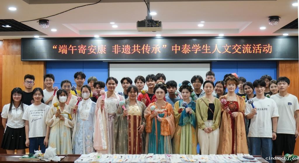 本网讯(校团委 国际合作交流中心 关工委)5月27日下午,由校团委、国际合作交流中心、关工委主办,汽车工程学院承办的“端午寄安康 非遗共传承”中泰学生人文交流活动在十里校区举行。我校泰国留学生与各学生社团成员等40余人沉浸式体验端午习俗和非遗手工,共同感受中华优秀传统文化的魅力。