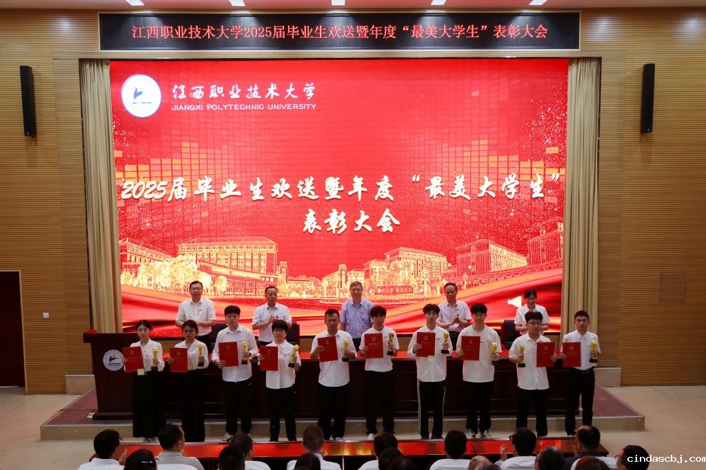 本网讯(学工处 团委)6月12日上午,我校在濂溪校区办公楼报告厅举行2025届毕业生欢送暨年度“最美大学生”表彰大会,党委书记胡永红,党委副书记、校长曾青生,副校长卢致俊,党委委员、副校长曾劲,党委委员、纪委书记石文兵出席,各职能部门、二级学院领导干部和2025届优秀毕业生代表等近300人参加。