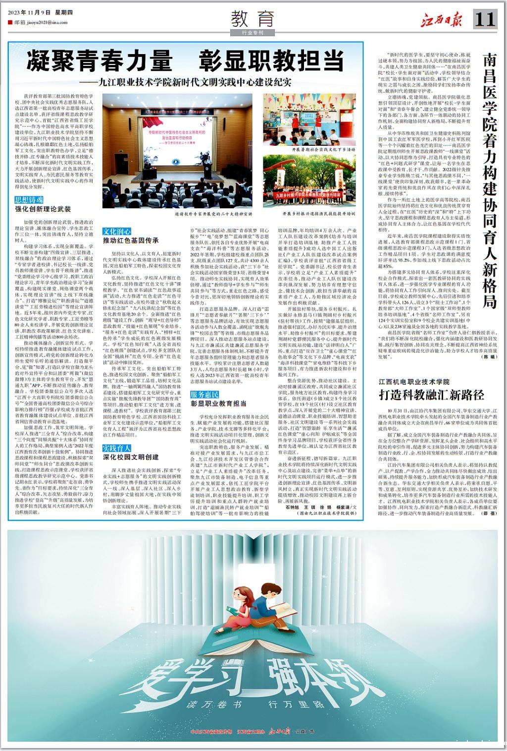 《江西日报》2023年11月9日11版《教育》版版面头条报道。